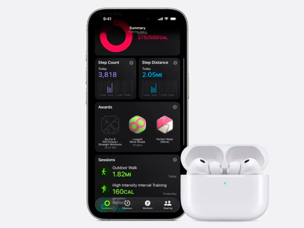 За допомогою AirPods Pro 3 та iPhone ви можете поринути у новий досвід тренувань у додатку «Фітнес», що включає такі види тренувань, як ходьба, їзда на велосипеді та інтервальні тренування високої інтенсивності (HIIT). Ви можете налаштувати автоматичне відтворення улюбленої музики та подкастів на початку тренування. З новою функцією «Напарник з тренувань» на базі Apple Intelligence ви можете отримувати особисті повідомлення, які допоможуть вам продовжувати. А завдяки доступу до кільця «Рухомість» і навіть до смуги вигоряння у Fitness+ ви, можливо, ніколи не зупинетесь.