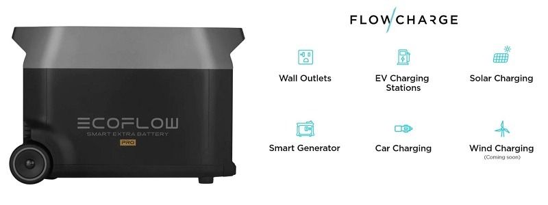 Акумулятор Smart Extra від DELTA Pro використовує всі методи заряджання, які є у DELTA Pro, у тому числі MultiCharge потужністю 6500 Вт. Це означає, що ви можете заряджати в будь-який час і в будь-якому місці, доки ваша додаткова батарея підключена до DELTA Pro. Після підключення вони одночасно заряджатимуться та розряджатимуться, підтримуючи рівень заряду батареї у відсотках на обох пристроях.