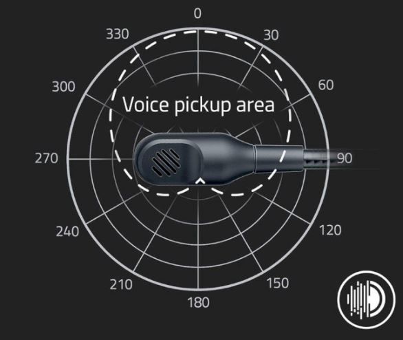 Покращена діаграма спрямованості захоплює більше голосу і менше шуму, оскільки звужується у напрямку до задньої і бічних сторін мікрофона, а завдяки згинальній конструкції мікрофона зона найкращого сприйняття легко розташовується біля вашого рота.