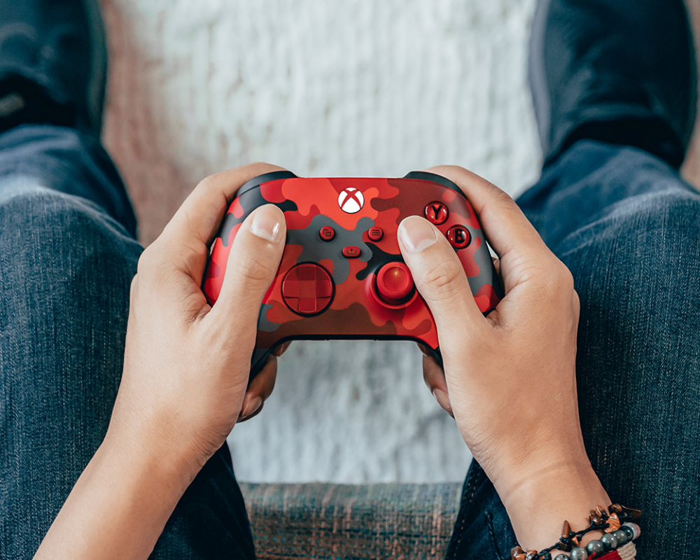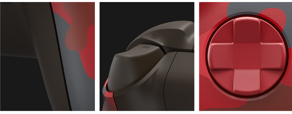Бездротовий геймпад Xbox - особливої серії Daystrike Camo, що відрізняється міцним напівпрозорим малюнком камуфляжу з кольорами: червоний, сірий і чорний камуфляжний. Ви ніколи не упустите свою ціль завдяки рукояткам з рифленими накладками з ромбічним візерунком на тригерах, бамперах та задній поверхні.