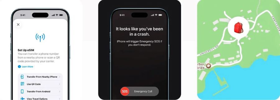 Вбудована eSIM забезпечує зручне, гнучке та безпечне підключення без фізичної картки — ідеально для подорожей. Crash Detection завдяки сенсорам і алгоритмам визначає серйозні аварії та викликає допомогу, якщо ви не можете цього зробити. А функція Find My дозволяє безпечно ділитися своєю локацією з друзями й родиною.