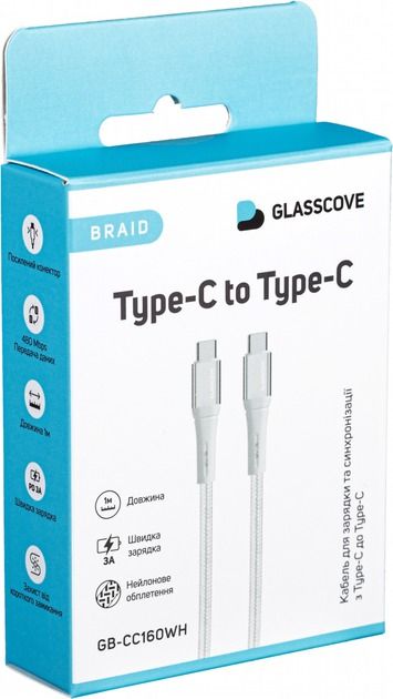Кабель Glasscove – це універсальний кабель, що підходить для смартфонів, планшетів та інших пристроїв, обладнаних роз'ємами USB Type-C та USB Type-C.