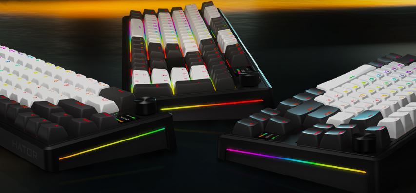 Механічні перемикачі HATOR Aurum Vanila Silent. Попередньо змащені лінійні свічі забезпечують надзвичайно плавне та точне спрацьовування, залишаючись при цьому майже беззвучними — ідеальний вибір для комфортного тайпінгу та ігрового процесу без зайвого шуму. Інтегрована лінза рівномірно розподіляє підсвічування, роблячи легенди на клавішах яскравими та чіткими навіть у темряві.