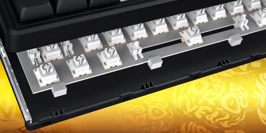Gasket mount архітектура. Конструкція з еластичними прокладками між платою та корпусом рівномірно розподіляє тиск під час натискань. Це знижує вібрації та робить звук тайпінгу більш м’яким і приємним. У результаті клавіатура дарує винятковий комфорт і відчуття повного занурення під час роботи чи гри.