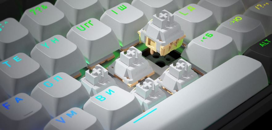 Гаряча заміна перемикачів. Легка й швидка заміна свічів без пайки – підлаштовуйте клавіатуру під власні вподобання.