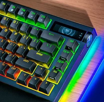 Відкрийте для себе повне занурення з Razer BlackWidow V4 Pro 75 %, яка забезпечує справжню частоту 4000 Гц у бездротовому режимі завдяки технологіям Razer HyperSpeed і HyperPolling . Клавіатура з можливістю гарячої заміни, Bluetooth, коліщатком управління Razer і OLED-дисплеєм для моніторингу показників ПК, відображення користувацьких GIF та багато чого іншого - тепер для створення клавіатури вашої мрії немає жодних обмежень.