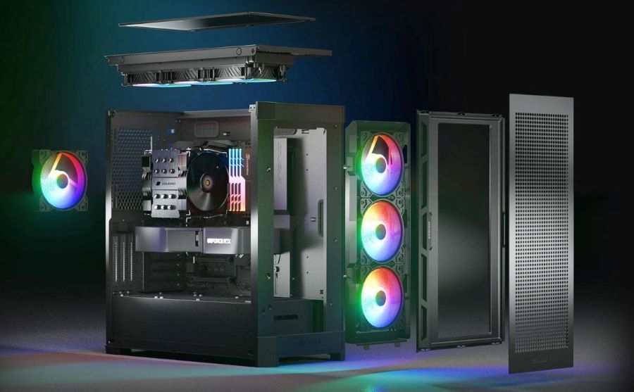 Знімна верхня панель і передній кронштейн забезпечують вільний доступ до внутрішнього простору корпусу. Це значно спрощує процес збирання, встановлення комплектуючих і прокладання кабелів. Навіть складні конфігурації можна зібрати без зайвих зусиль і обмежень за простором.