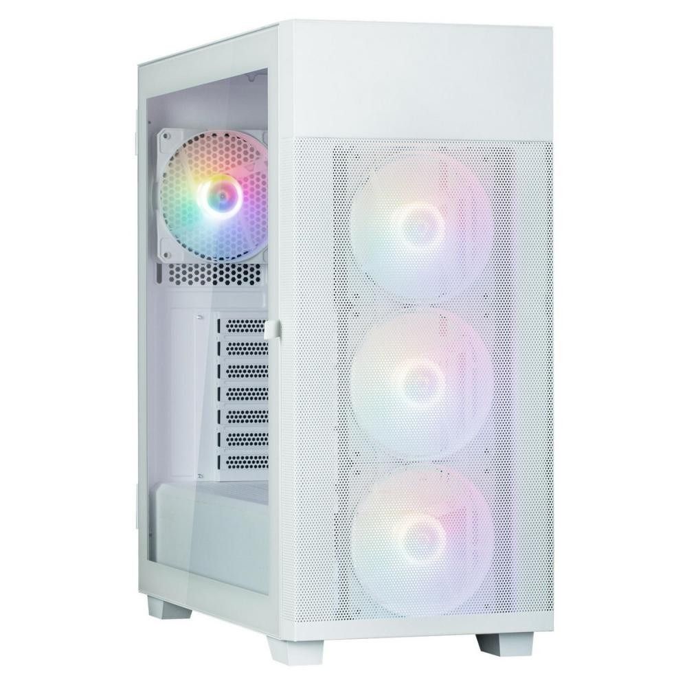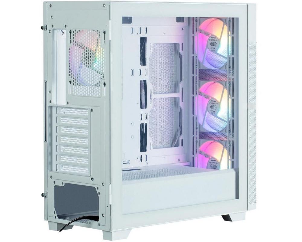 Корпус вирізняється загартованим склом на бічній панелі, що забезпечує панорамний огляд компонентів і створює сучасну естетику. Сітчасті верхня та передня панелі сприяють оптимальному повітряному потоку, забезпечуючи ефективне охолодження навіть для потужних конфігурацій. Синхронізована RGB-підсвітка із попередньо встановленими вентиляторами додає візуальної привабливості, дозволяючи налаштувати кольори через сумісні материнські плати.