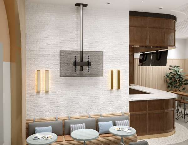 Перевагою цього кронштейна є його продумана конструкція для стельового монтажу, яка забезпечує безпеку та міцність кріплення. Простота встановлення, яка досягається завдяки детальній інструкції та комплекту для монтажу, дозволяє без зусиль включити новий телевізор у приміщення.
