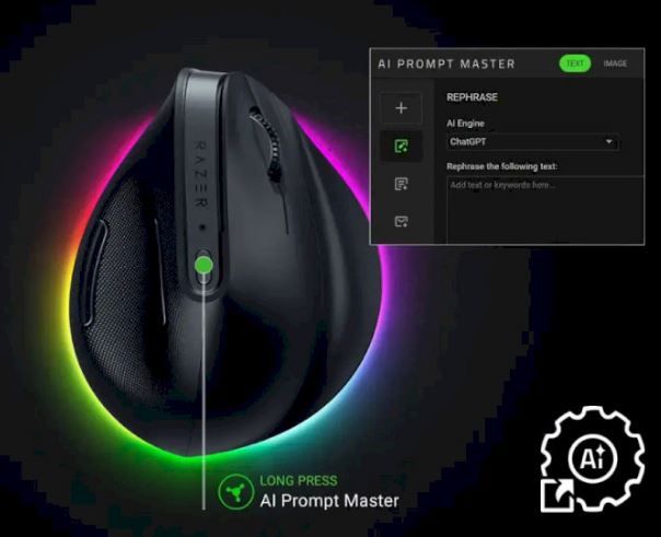 Підсумовуйте тексти, створюйте чернетки листів та виконуйте інші дії одним кліком. Відкрийте доступ до потужних швидких команд через Razer Synapse 4, збережіть їх на миші та миттєво оптимізуйте роботу з інструментами ШІ.