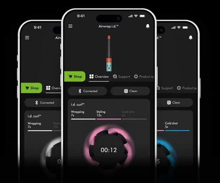 Через додаток MyDyson можна налаштувати Airwrap id по Bluetooth, перевіряючи поточні параметри роботи. Регулярне обслуговування стайлера стає простішим завдяки сповіщенням додатка, який підкаже, коли потрібно очистити або перевірити прилад. Також додаток пропонує навчальні відео для експериментів з різними образами.