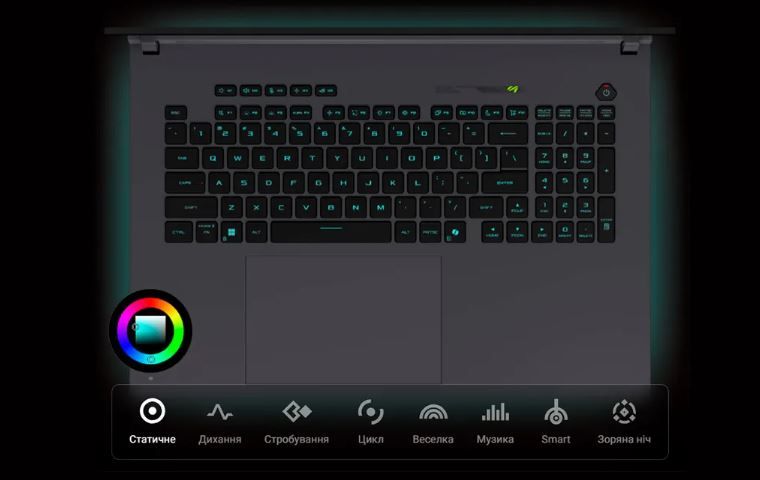 Часом перемогу від поразки може відділяти одне натискання клавіші, тож ми оснастили Strix G18 повнорозмірною клавіатурою, призначеною забезпечувати перемогу. Завдяки технології раннього спрацювання клавіш – Overstroke – ноутбук краще контролюється під час роботи та гри, а це означає менше натискань на клавіші та кращу швидкодію. Ця технологія орієнтована на геймерів: проміжки між функціональними клавішами допомагають інтуїтивно розпізнавати клавіші, а спеціальні гарячі клавіші забезпечують швидкий доступ до тих команд, які часто використовуються. Великі клавіші навігації забезпечують точніше керування в розпалі бою. Великий тачпад полегшує навігацію в усіх програмах, а повноколірне підсвічування окремих клавіш надає безмежні можливості для персоналізації: ви можете вибрати для кожної клавіші індивідуальний колір із мільйонів кольорів. Ви також можете створювати різні схеми для кожної гри в Armoury Crate, щоб кожна гра відчувалася по-своєму.
