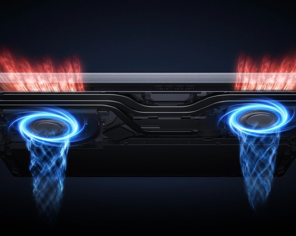 Система охолодження "Ураган" знову еволюціонує, покращуючи загальну ефективність охолодження на 10,8%. Вона оснащена двохвентиляторною безшумною системою на 12V для ігор, яка збільшує ефективний потік повітря на 3.6%. У поєднанні з конфігурацією двох теплових трубок 8мм + 6мм та термопастою з фазовим переходом, з теплопровідністю до 8.5W/M.K, це є значним покращенням на 63.4% у порівнянні з попереднім поколінням, що забезпечує більш ефективний та холодний охолоджувальний досвід, гарантуючи, що ноутбук може стабільно працювати навіть під високим навантаженням.
