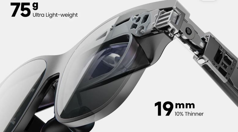 Вага всього 75 грамів робить Xreal Air 2 Pro непомітними навіть під час тривалого носіння. Ергономічний дизайн і регульована посадка гарантують, що окуляри підійдуть для будь-якого користувача. М'які дужки та носові подушечки забезпечують комфорт під час використання протягом усього дня.