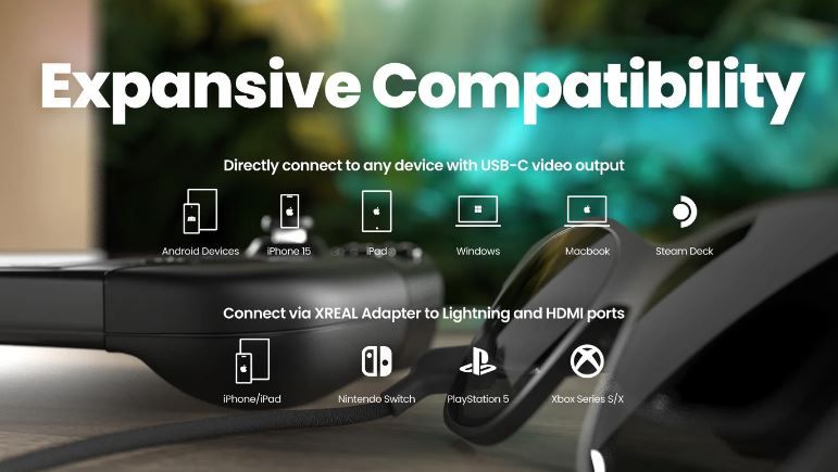Окуляри підтримують під'єднання через USB-C, що дає змогу використовувати їх з Android, iPhone, iPad, Windows, MacBook і багатьма іншими пристроями. Завдяки підтримці адаптерів XREAL, пристрій може працювати з Lightning і HDMI портами, роблячи його сумісним з консолями та іншими девайсами.