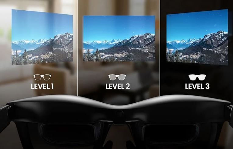 Xreal Air 2 Pro оснащені електрохромною технологією, що дає змогу вибрати один із трьох рівнів затемнення - від легкої тіні до повного блокування зовнішнього світла. Це дає змогу використовувати окуляри як у приміщенні, так і на вулиці, не відволікаючись на зовнішні джерела світла.