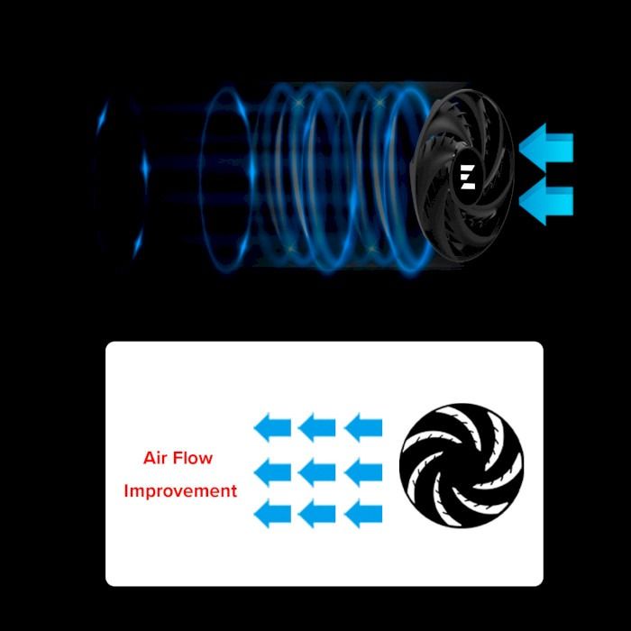 Радіатор має асиметричну конструкцію, стопка ребер радіатора забезпечує сумісність материнської плати й оперативної пам'яті.