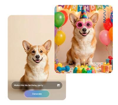 Редагуйте фото швидко й легко – з Galaxy AI достатньо лише кілька слів. Додавайте об'єкти, як-от аксесуари, на фото вашого улюбленця, просто описавши бажані зміни звичайною мовою. І Galaxy AI втілить вашу ідею за лічені хвилини.