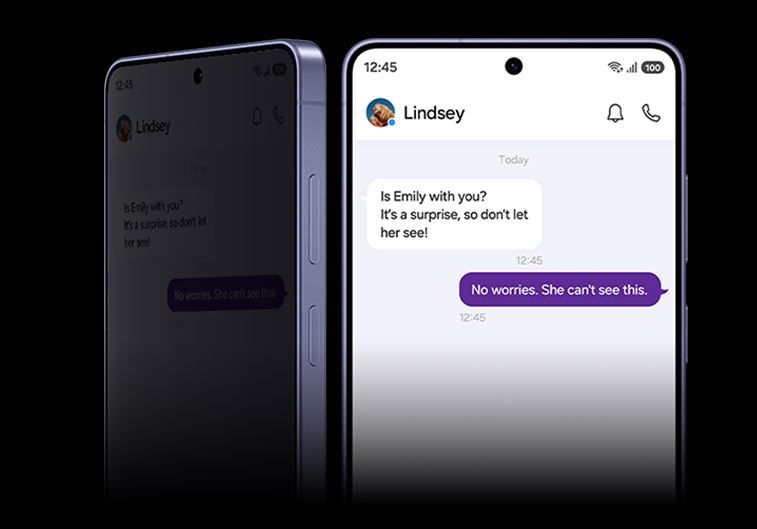 Відкрийте для себе екран, який дбає про вашу приватність -- ексклюзив Galaxy S26 Ultra. Просто увімкніть вручну, і Privacy Display використовуватиме інноваційні технології для захисту вашої конфіденційної інформації шляхом приховування всього екрана від сторонніх очей. Або ж ви можете вибрати, що хочете приховати, наприклад, певні програми, усі вхідні повідомлення чи PIN-коди та паролі, коли вводите їх в налаштуваннях, на екрані блокування чи в захищеній папці.