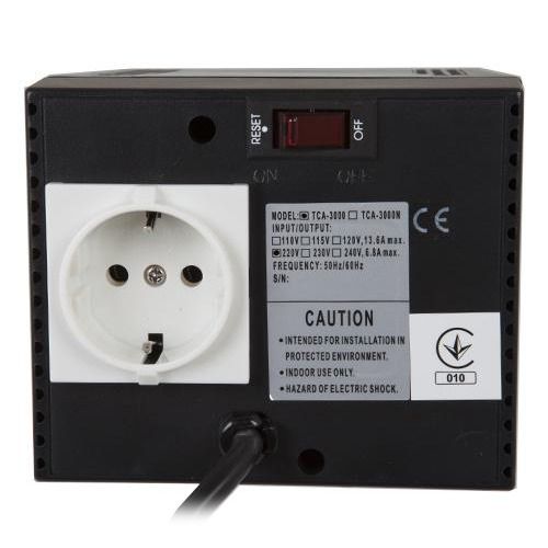 Стабілізатор напруги Powercom TCA-3000 призначений для захисту обладнання, що підключається від: зниженої напруги; підвищеної напруги; високовольтних імпульсів; навантаження; короткого замикання.
