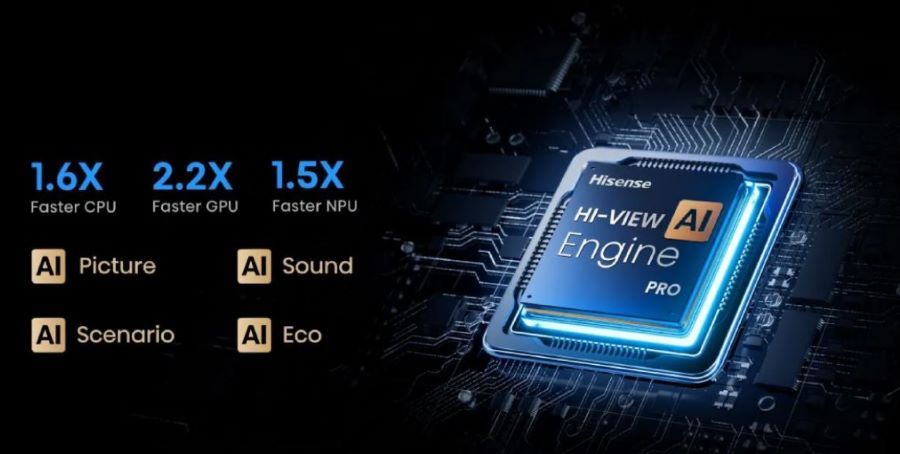 Телевізори Hisense використовують передові технології ШІ для точного аналізу сцен і покращення контрасту. Контент SDR може бути покращений до якості, подібної до HDR, з чіткими деталями, багатими кольорами та глибоким контрастом.