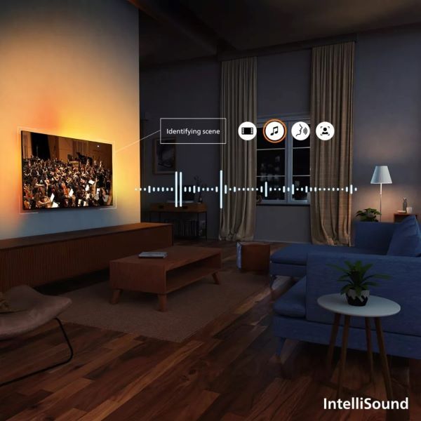 Функція IntelliSound використовує штучний інтелект для автоматичного налаштування аудіо під конкретний тип контенту — фільм, музику чи новини. Для тих, хто надає перевагу ручному керуванню, доступні попередні звукові профілі або можливість самостійного налаштування параметрів.
