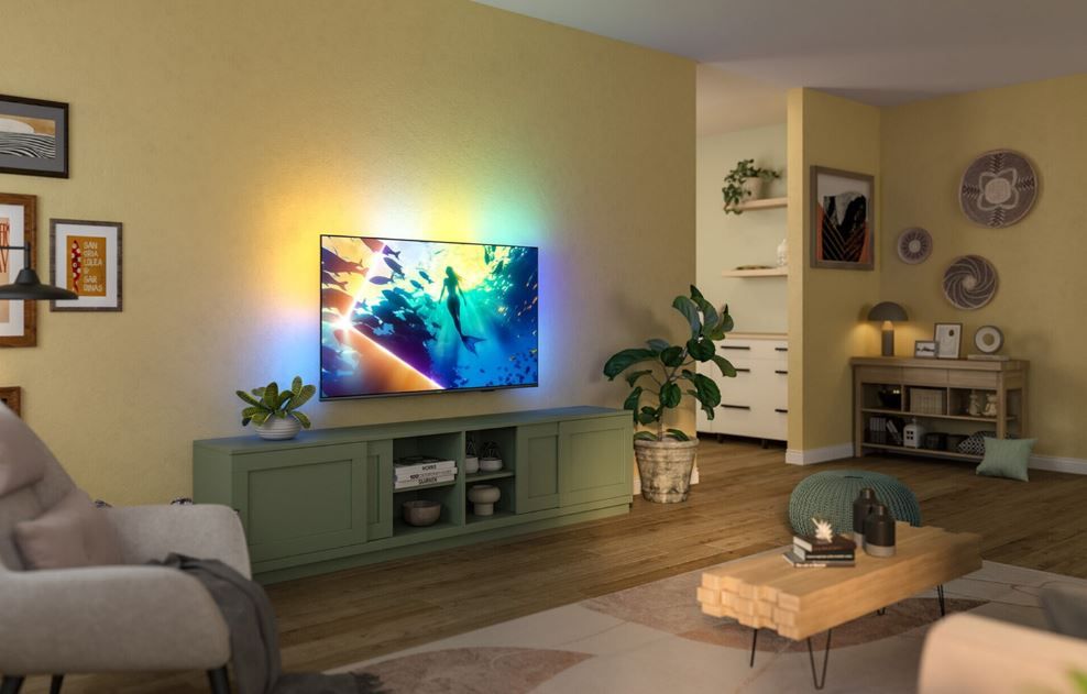 Завдяки інтегрованій світлодіодній підсвітці, що динамічно реагує на кожну сцену, технологія Ambilight створює навколо екрана ефект барвистого сяйва. Увесь контент ніби виходить за межі рамок, занурюючи вас глибше у події фільму, гри чи концерту. Цей ефект додає емоцій та робить перегляд ще більш захопливим, і спробувавши його одного разу, важко уявити телевізор без такої магії світла.