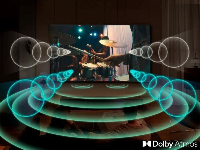 Телевізори Samsung пропонують захоплюючий звуковий досвід, який переносить глядачів у саме серце подій. Завдяки технології Dolby Atmos звукові ефекти заповнюють місце, створюючи ілюзію справжньої присутності. Ваша улюблена музика, фільми та шоу звучать так, ніби ви сидите у першому ряду на концерті або в центрі захоплюючого екшену. Кожен звук від енергійного удару барабанів до легких шелестів листя ви відчуєте з неймовірною чіткістю.