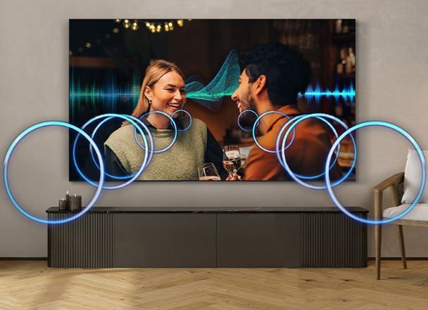 Відчуйте пульсацію подій в кожній сцені. Динаміки верхніх каналів Samsung працюють з технологією Dolby Atmos, створюючи багатовимірний купол звуку, що огортає вас справді насиченим звучанням.