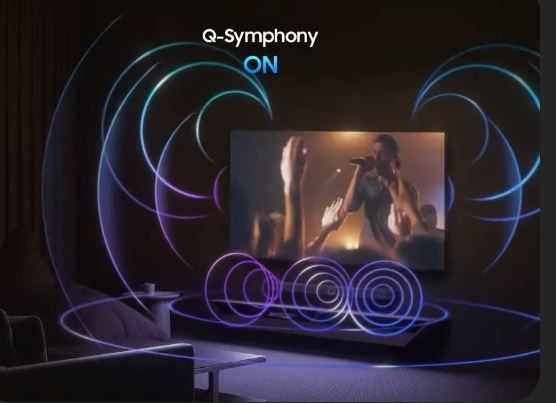 Насолоджуйтесь гармонійним і повноцінним звучанням. Технологія Q-Symphony дозволяє телевізору й саундбару працювати одночасно, не вимикаючи динаміки жодного з пристроїв.