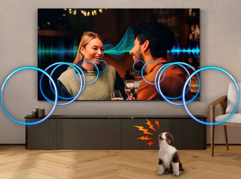 Пориньте в насичений багатовимірний звук завдяки динамікам верхнього каналу з підтримкою Dolby Atmos і потужній системі 6.2.4ch. Технології Q-Symphony та AI-звук синхронізують телевізор із саундбаром і підлаштовують звук під контент і навколишнє середовище, підсилюючи діалоги й точно повторюючи рух об’єктів на екрані — для повного аудіо-занурення.