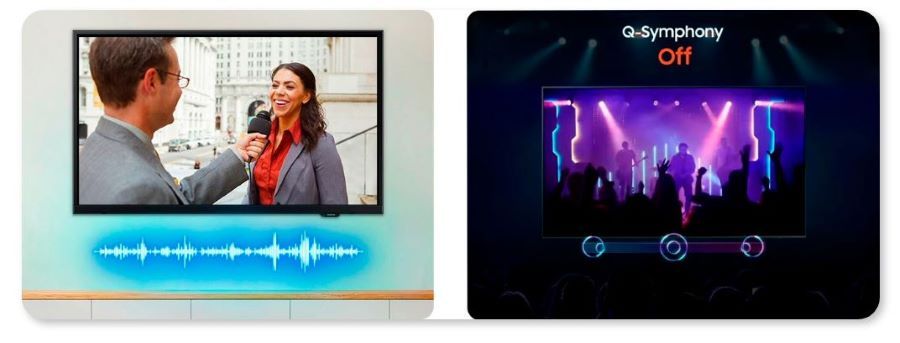 Створіть ефект об'ємного звучання з віртуальним верхнім каналом аудіо, який слідує за дією, щоб ви могли зануритися в звук. Adaptive Sound гарантує, що ви рідко пропустите слово, регулюючи гучність діалогу залежно від рівня шуму у вашій кімнаті та контенту, який ви дивитеся. Пориньте у звук як від вашого телевізора, так і від саундбару, оркестрованих у гармонії. Q-Symphony дозволяє динамікам вашого телевізора та сумісного саундбару Samsung працювати одночасно для справжнього ефекту об'ємного звучання без вимкнення динаміків телевізора.