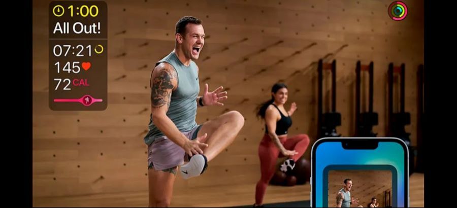 Транслюйте Apple Fitness+ за допомогою Apple AirPlay і переглядайте на екрані BRAVIA час на вправу, указівки тренера тощо. Якщо у вас є Apple Watch ви також можете переглядати особисті показники, як-от пульс і спалені калорії.