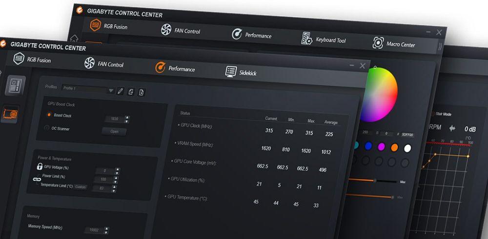 Gigabyte Control Center (GCC) — це універсальне програмне забезпечення для всіх підтримуваних продуктів Gigabyte. Воно надає інтуїтивно зрозумілий інтерфейс, що дозволяє користувачам регулювати тактову частоту, напругу, режим роботи вентиляторів та цільові параметри живлення в реальному часі.