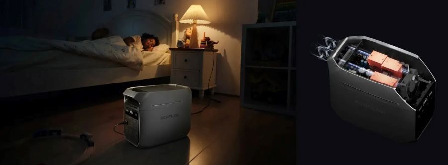 Однією з переваг EcoFlow Delta 3 є його низький рівень шуму. Під час роботи на потужності менше 600 Вт рівень шуму становить лише 30 дБ, що робить його практично безшумним. Це чудове рішення для нічного використання або в приміщенні.