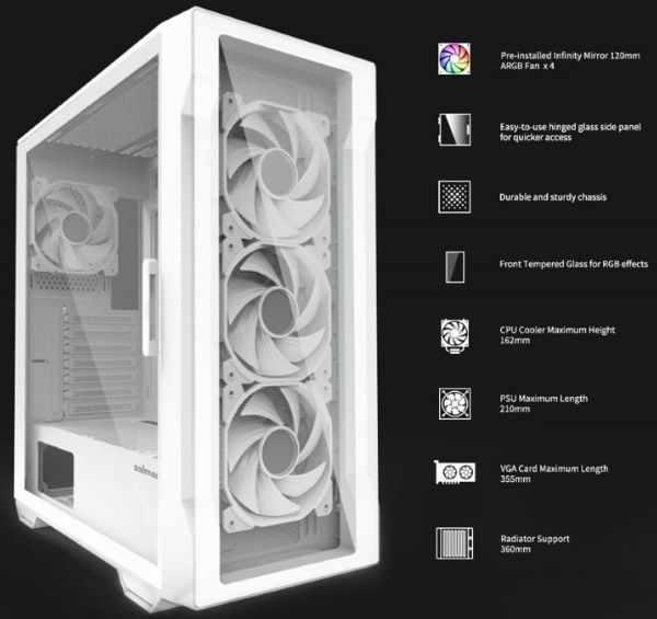 Zalman I3 Neo TG White - это просторный Midi-Tower корпус, который поддерживает материнские платы формата ATX, MicroATX и Mini-ITX, что делает его универсальным для большинства сборок - от офисных систем до мощных игровых ПК.