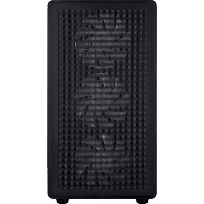 В комплекте 4х120 мм ARGB вентилятора. Обеспечен эффективный обдув внутреннего пространства благодаря особенностям конструкции, а также продумана защита компонентов от пыли.