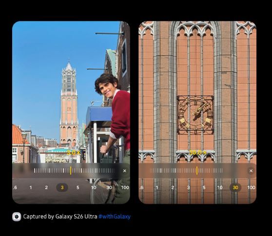 Благодаря 200 МП широкоугольному сенсору камеры, усовершенствованному нашим ProVisual Engine, смартфон Galaxy S26 Ultra способен фиксировать мельчайшие детали. Изображения с высоким разрешением анализируются в реальном времени для сохранения четкости текстур и четкости.