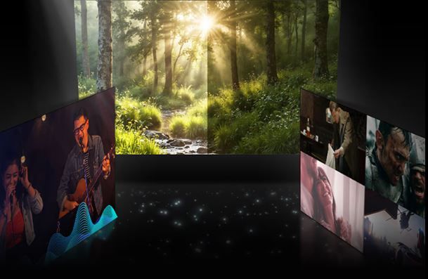 Наслаждайтесь гармоничным и полноценным звучанием. Технология Q-Symphony позволяет телевизору и саундбару работать одновременно, не выключая динамики ни одного из устройств.
