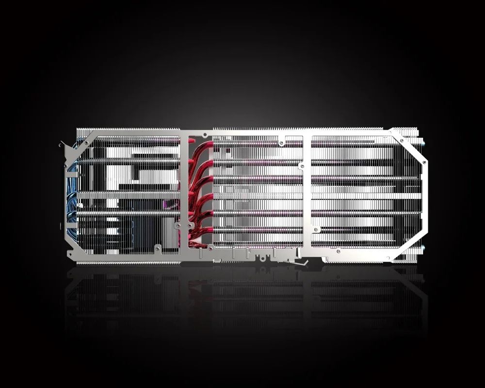 Семь тепловых трубок из никелированной меди выстроены вдоль печатной платы, эффективно отводя тепло от ключевых компонентов. Это гарантирует стабильную работу даже при высоких нагрузках.
