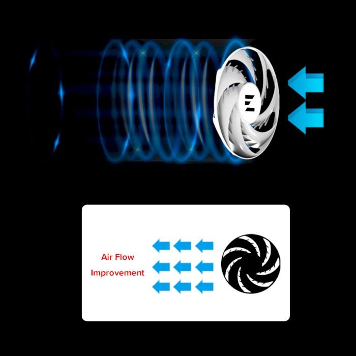 В отличие от обычного вентилятора, специально разработанный кольцевой вентилятор Zalman AF120 с лопастями в виде акульих плавников оказывает минимальное сопротивление воздушному потоку, обеспечивая минимальный уровень шума при работе. Гидроподшипник, как и шарикоподшипник, не вступает в контакт с металлом, а слой смазки покрывает подшипник. Это обеспечивает низкий уровень шума, низкое тепловыделение и ударопрочность, что делает его чрезвычайно прочным и долговечным.