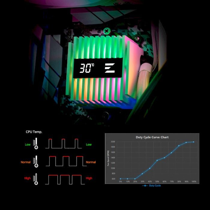 Alpha 2 AIO оснащен функцией отображения температуры в реальном времени, которая берет данные о температуре из BIOS, позволяя пользователям немедленно отслеживать текущую температуру.