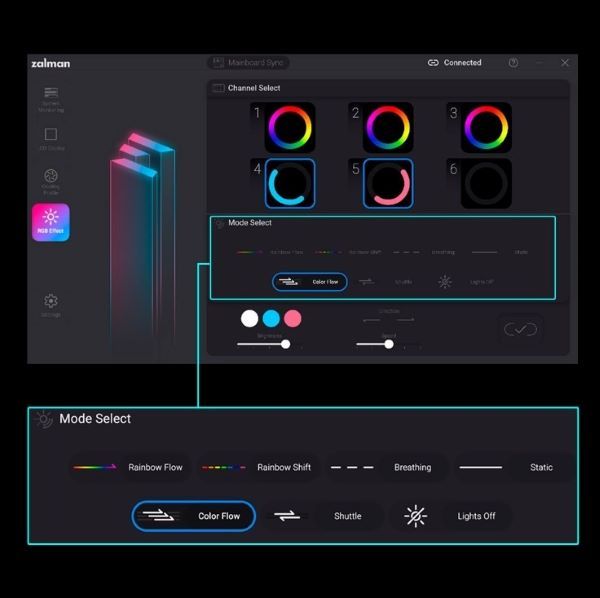 Контроллер ZM-OZ HUB поддерживает подключение до 6 ARGB и PWM вентиляторов через один SATA-кабель. Благодаря поддержке синхронизации с материнской платой, управление подсветкой и охлаждением становится простым и эффективным.